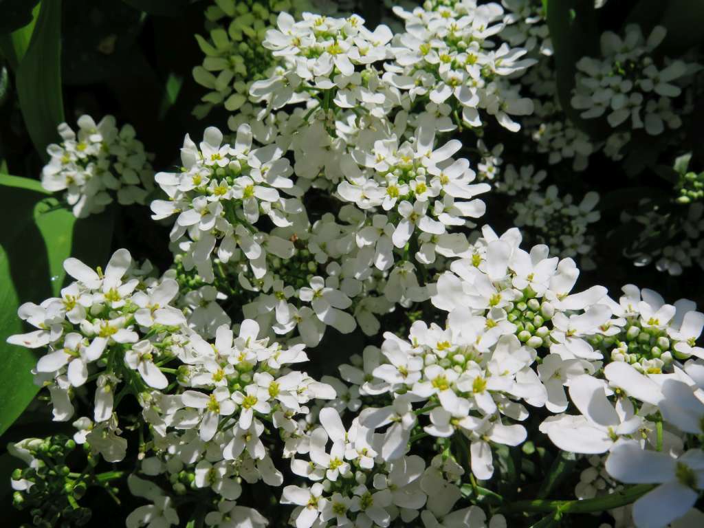Ebenfalls zu den früh blühenden Polsterstauden zählt die Schleifenblume oder Iberis. Bereits im April erscheinen zwischen dem tiefgrünen Laub ihre schneeweißen Blüten. In manchen Jahren stehen die Blütendolden so dicht beieinander, dass die immergrünen, länglich ledrigen Blätter kaum noch sichtbar sind. Auch diese Staude liebt sonnige Standorte mit nährstoffarmen Böden.