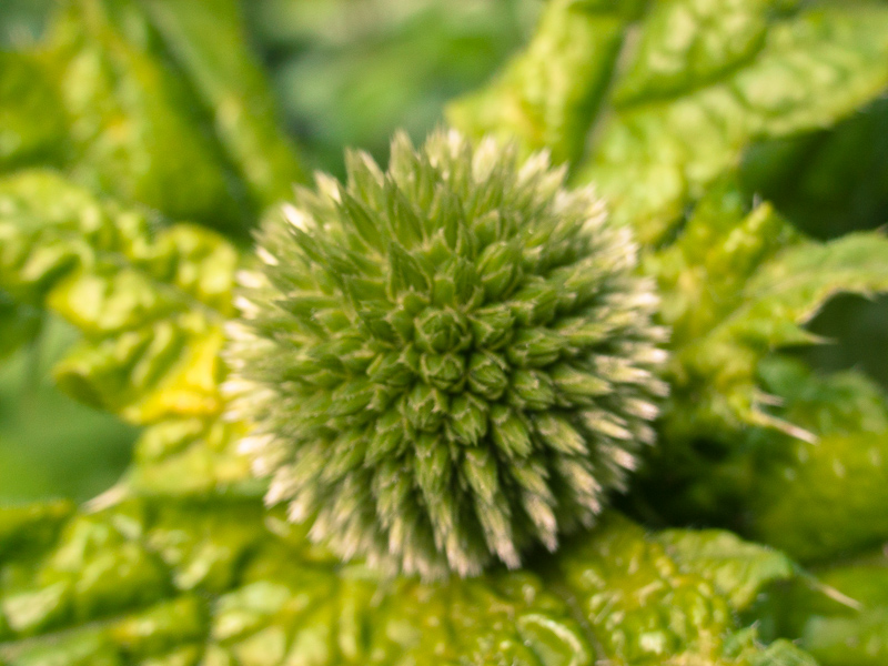 Äußerst attraktiv und dabei anspruchslos ist meine Kugeldistel (Echinops). Sie ist ursprünglich in Felsenregionen und im Grasland Afrikas, Asiens und des Mittelmeerraums zuhause. Allein ihre Blätter sind schon sehr dekorativ. Sie sind mehrfach geteilt und laufen spitz zu. Ihre Unterseite ist weiß behaart.
