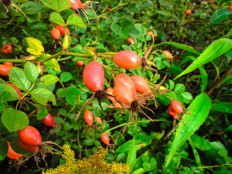 Allmählich geht der Herbst in den Winter über. Neben letzten Rosenblüten und vertrockneten Blütenständen an den Sträuchern retten sich auch die Beerenfrüchte in den Winter, die von den Vögeln verschont geblieben sind.